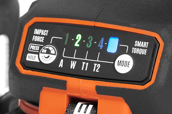 «Т1» - Начало вращения на максимальной скорости. Автоматически останавливается при повышении нагрузки. Время остановки варьируется в зависимости от крепежа и материала.